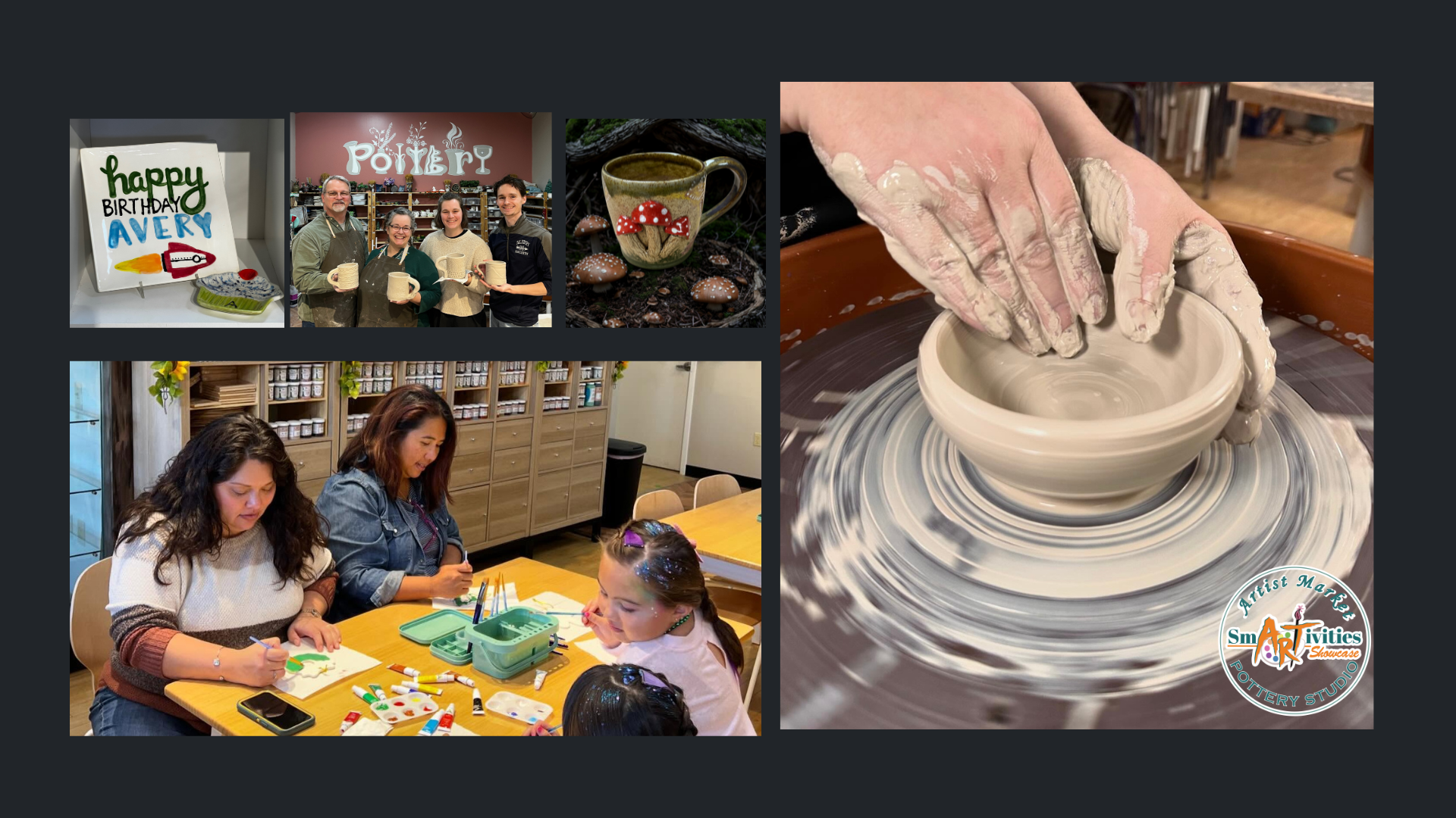 We offer handmade unique gifts, home decor, DIY walk-in activities, as well as classes and services to help aspiring Artists of all ages and abilities grow.