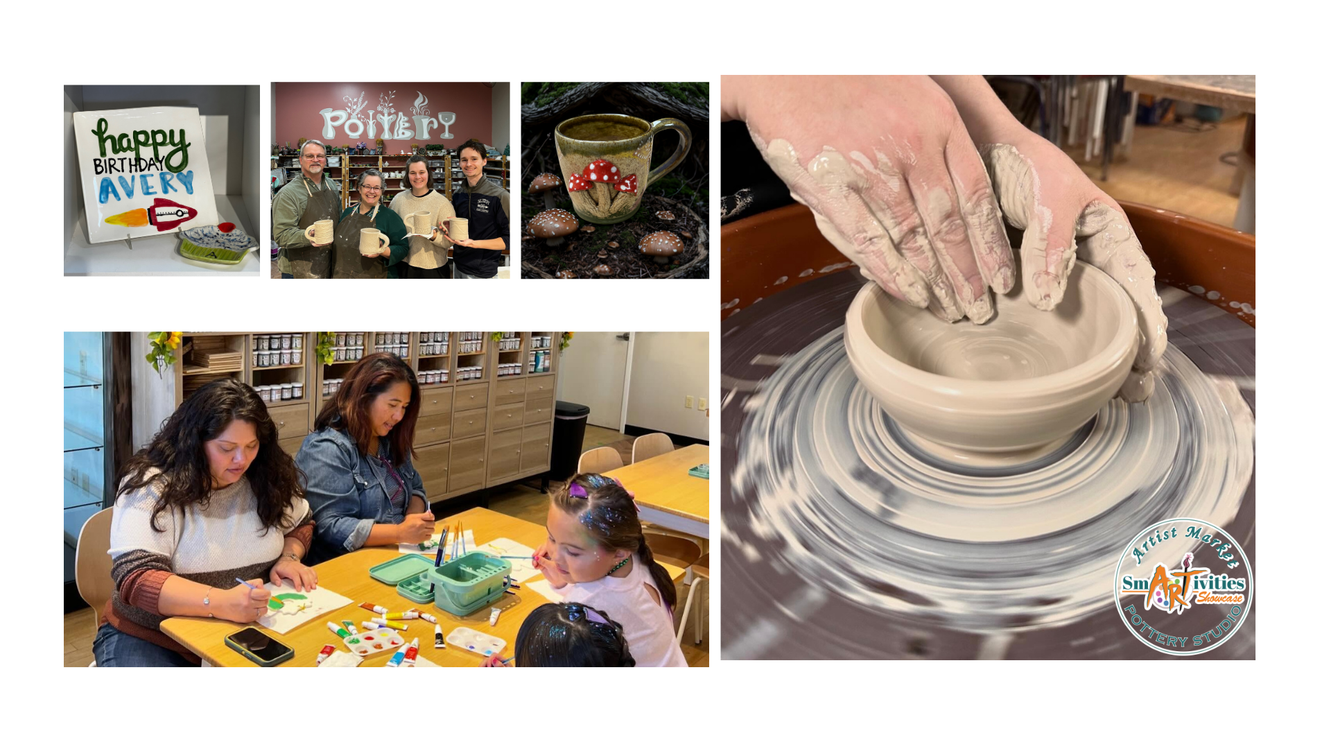 Now, given the opportunity for a larger space with a better layout for all that Smartivities Showcase has to offer, we have moved into an over 4,000 sq. ft. space in the Promenade. We are located across the street in Suite 103 in the Western end of the Shopping Center. With more space for our Artist Market, Creation Station Activities, Classes and Parties as well as a dedicated Pottery Studio with Memberships for Open Studio time, Creativity Grows Here and continues to grow more and more over time.