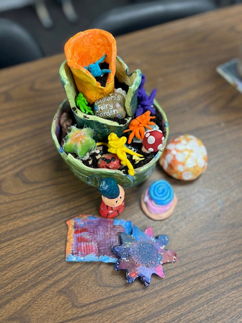 In this camp little hands will love exploring using real clay to make a Fairy garden flower pot.