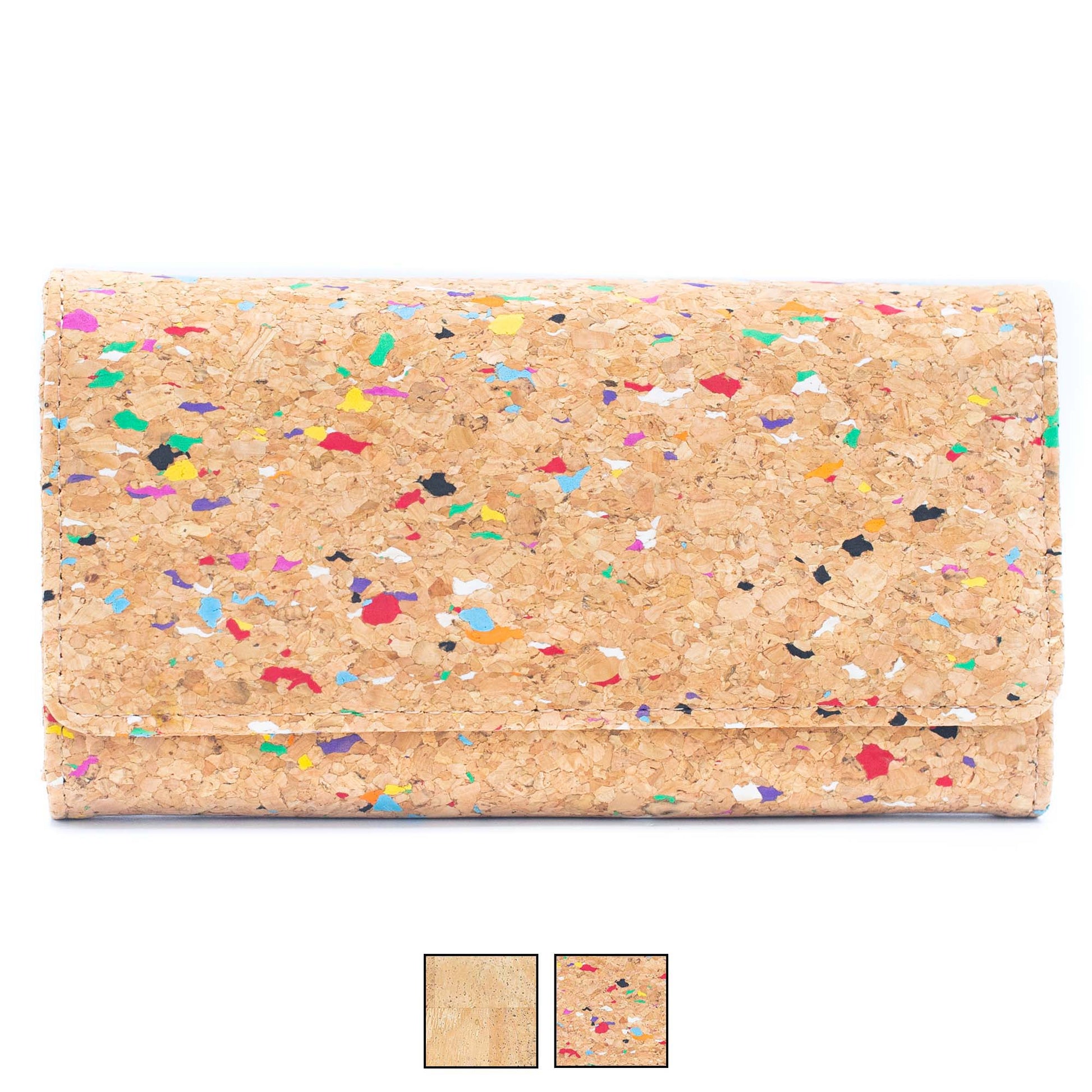 This bifold with snap button closure wallet is constructed out of resistant /waterproof cork fabric by well-qualified masters in Portugal. The material is rendered with a metallic splash of silver which gives it a lux look. It has a snap button closure for convenient access, this beauty has everything you would want in a wallet and more. The exquisite cork material is cruelty-free and animal-friendly. Carry it in your everyday bag and have a bright day. * Large capacity: It has 1 interior front ID window for quick access when you travel, 12 card slots to keep your credit and debit cards, and 5 compartments for cash, bills, and other documents in place.