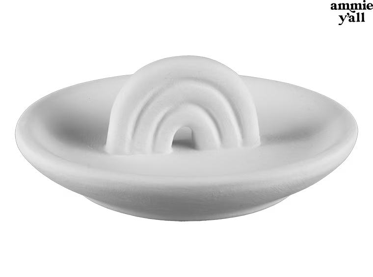 "This Rainbow Ring Dish is just what your vanity needs! A sweet and petite rainbow sits upright in the middle of this round dish, adding some 3-dimensional charm to your standard catch-all dishes. I love seeing my favorite rings sitting in this dish at the base of the mini rainbow!" - Ammie Y'all