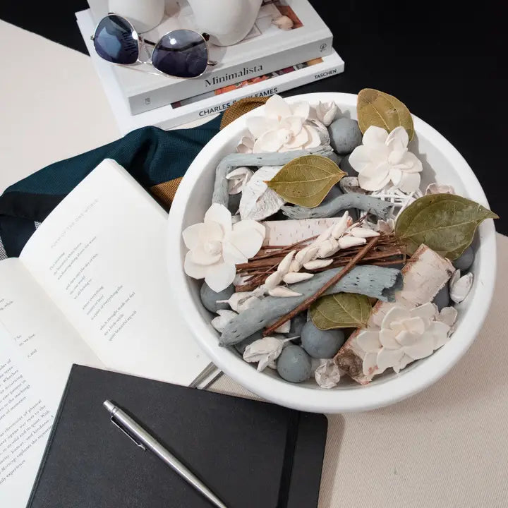 Simple, natural textures and neutral colors enable this potpourri to easily accentuate any home. With a fragrance simple yet complex this is sure to be a favorite potpourri.