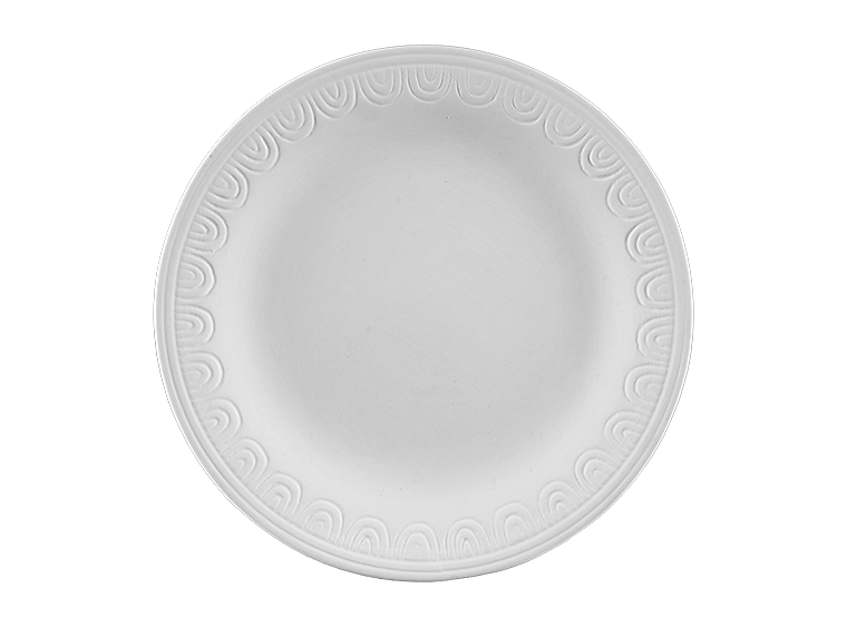 This Boho engraved design is sure to be a crowd pleaser! This ceramic salad plate features a simple yet elegant "rainbow" like design on the rim, perfect for antiquing and tinting in. There is plenty of space in the center to customize this boho plate with your favorite message or design. This simple and trendy design is great for painters of all ages!
