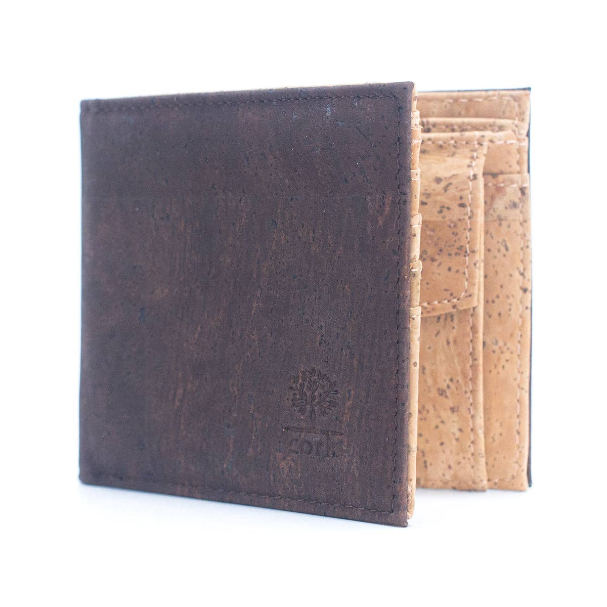 Men's Cork Wallet, packaged in an elegant gift box. Available in three color combinations: Brown + Natural/Rustic, Brown + Natural/All Brown, this wallet features ample space for 6 bank cards and a coin pocket. Additionally, the wallet has 2 separate compartments to store your bills. With FEID anti-theft protection, your cards and personal information are kept safe at all times.