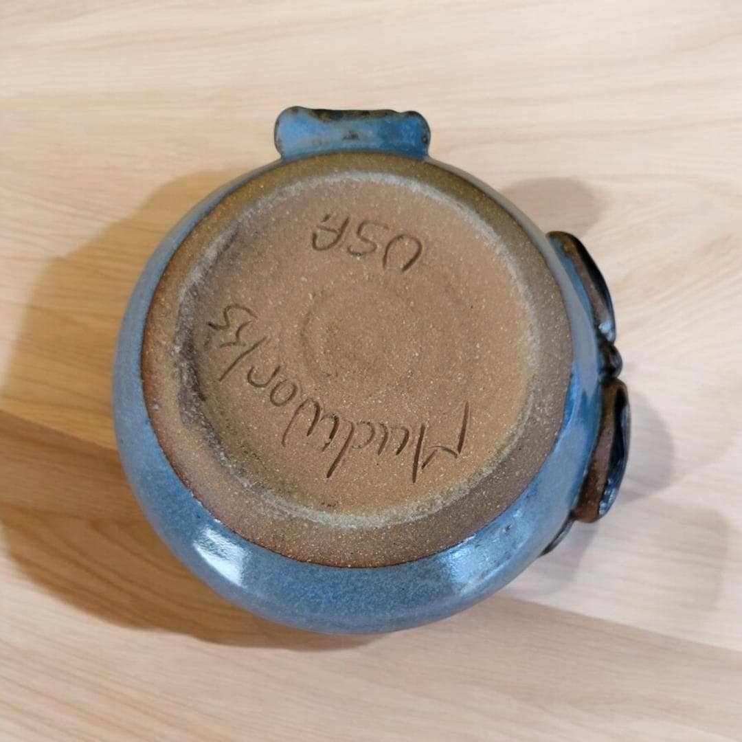 All of our mugs are hand-thrown and hand-painted. This mug was hand-dipped in our lead free Williamsburg Blue glaze and topped off with our lead free Floating Blue glaze. The mug holds approximately 14 fluid ounces. Just like butterfly wing patterns, each mug at MudWorks is unique! As they are hand-made, there will be slight variations in color, size, and shape, so please allow for such variations :)