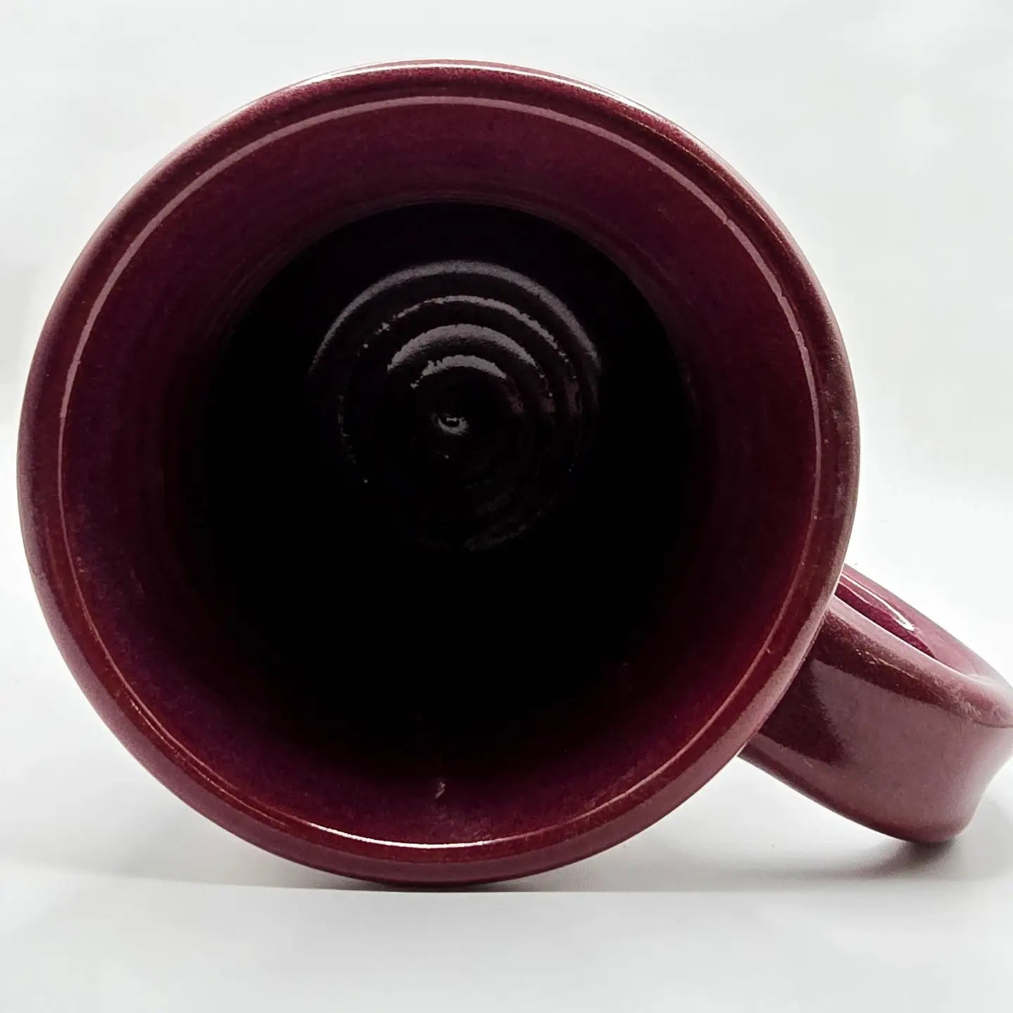This mug is purrrfect for any cat lover! Here we have 2 cats in love, resting in a heart. Glazed in our beautiful raspberry. All of our pottery is microwave, dishwasher, and food safe. This mug measures out to about 4.5" tall and about 5.5" wide with the handle. Our mugs hold about 14 oz of liquid.