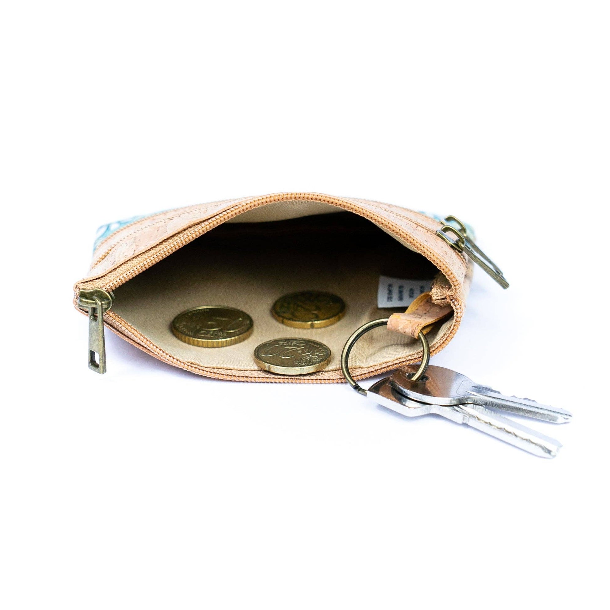 Chic Printed Cork Mini Wallet with Triple Zippers