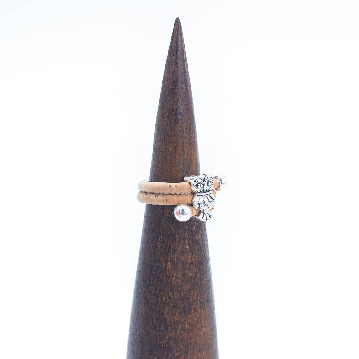 An owl charm cork cord ring is a type of jewelry that features a small owl charm attached to an adjustable cord made from cork material. The cork cord allows for the ring to be easily adjusted to fit different finger sizes. The owl charm is a symbol of wisdom, intelligence, and intuition. Wearing an owl charm cork cord ring can serve as a reminder to stay curious, wise, and intuitive throughout the day. It can also be a stylish accessory that adds a touch of nature to any outfit.