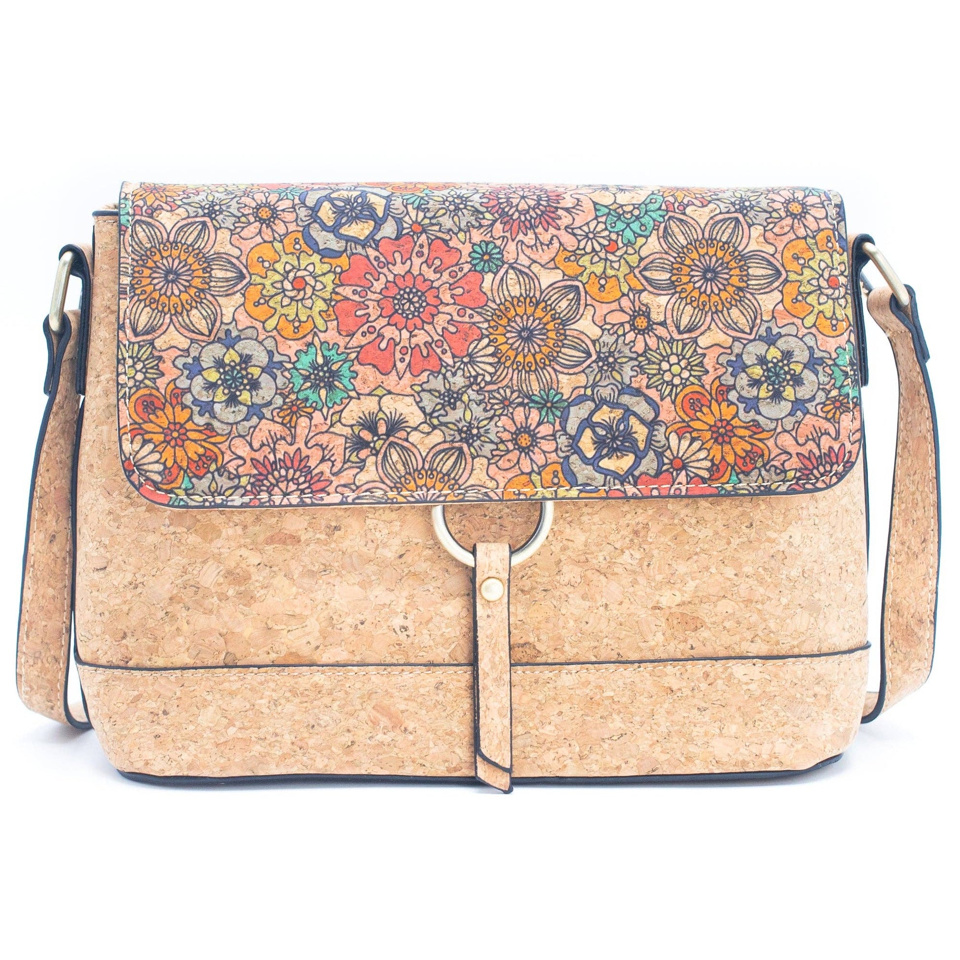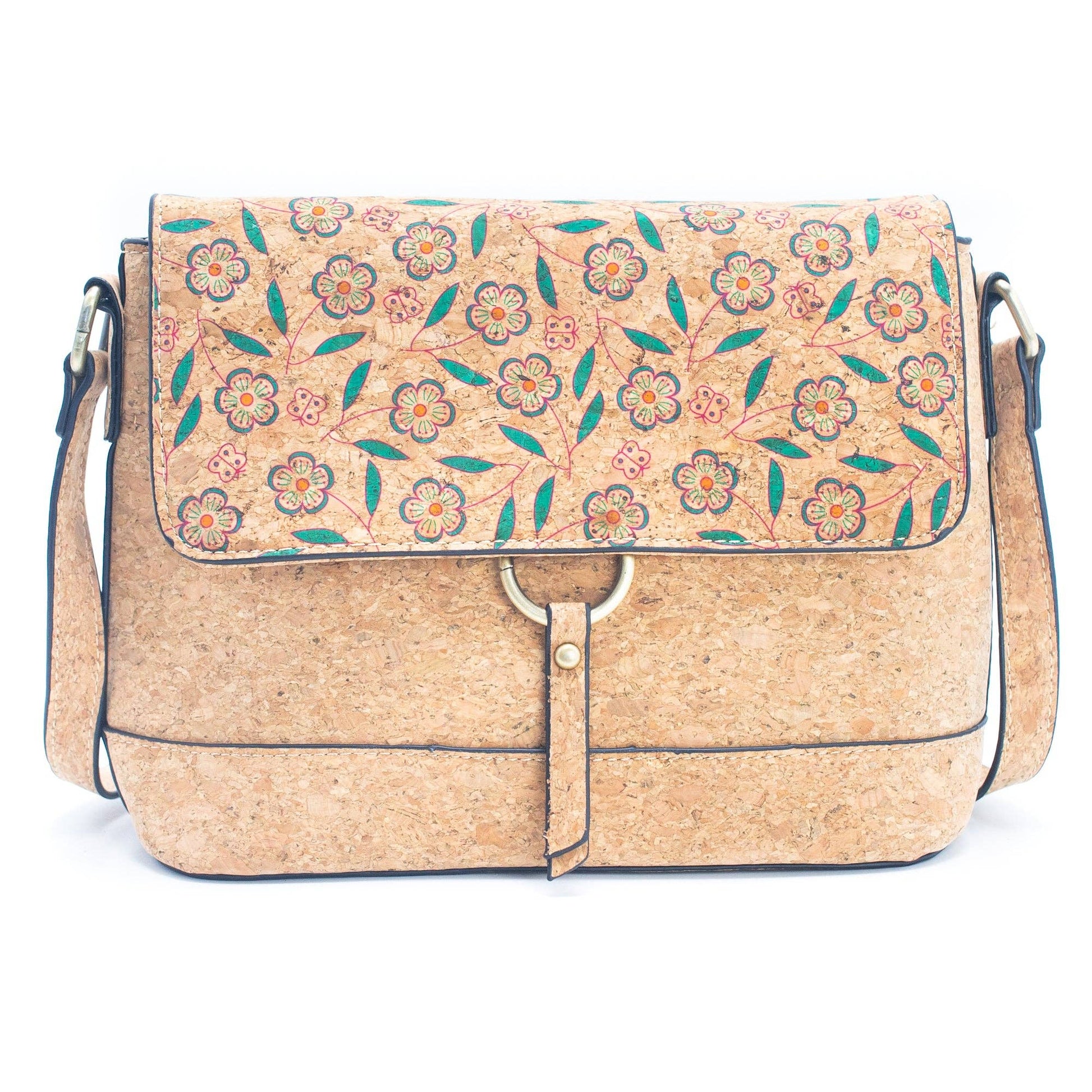 Stylish and ethical lady crossbody bag made with sustainable cork fabric - Zipper pocket on the back - Compact inside with 2 small pockets and a small zipper pocket to fit your daily items
