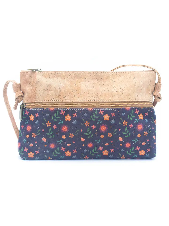 Cork crossbody bag, designed for women who value sustainability and style. The bag comes in five different patterns, each featuring a natural cork material and five vibrant and colorful printed designs.