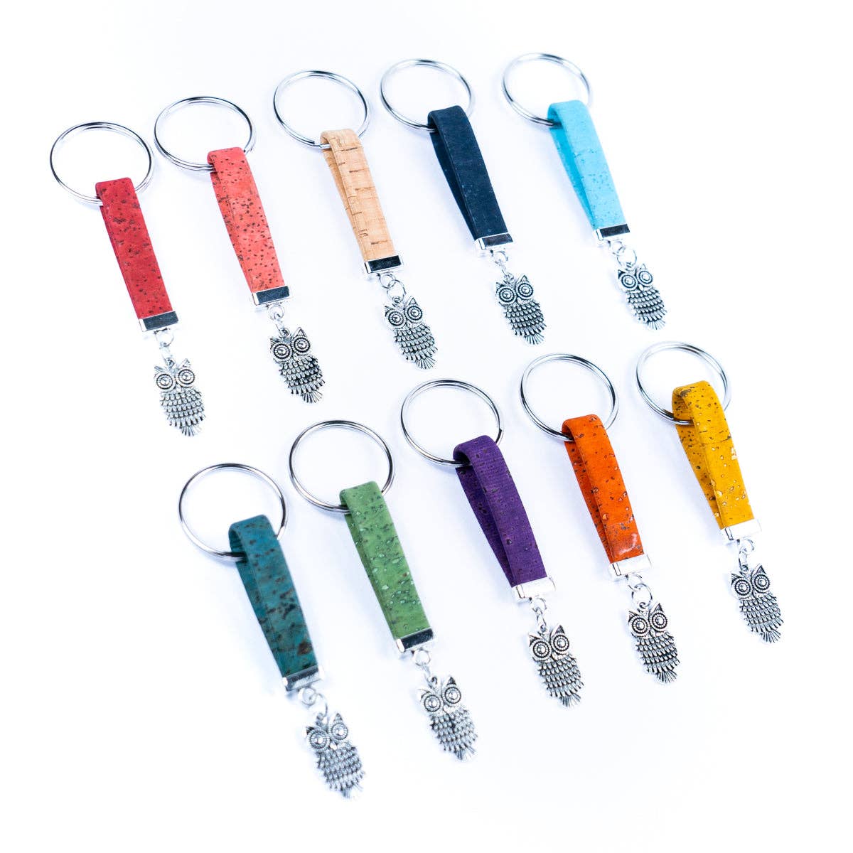 Owl Pendant & Colored Cork Handcrafted Keychain