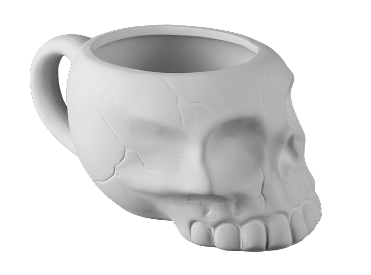 This bisque Cranium Cafe Mug is totally bad to the bone! Got no energy? Here's a no brainer for you: this is the perfect mug to bring you back to life, and just the right size for your morning cup of coffee or tea. Paint this mug as a spooky skull for Halloween, or add color to create a lifelike sugar skull to celebrate Dia de los Muertos (Day of the Dead).
