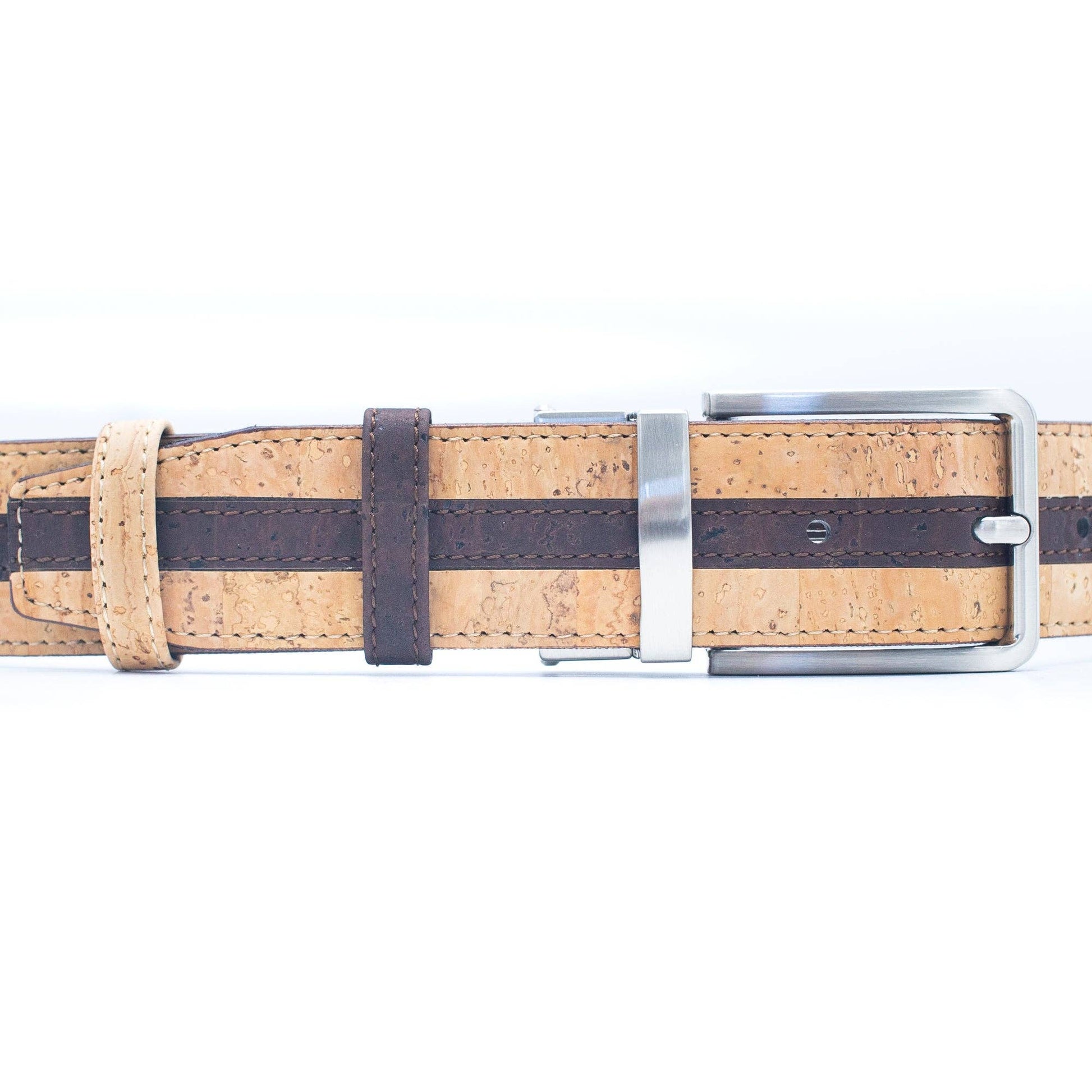 A catchy brown cork belt that will give you the perfect texture to your outfit. The metal buckle in the belt adds a smart look overall. The patch work that runs through the belt is a sure winner. Oomph up your basic outfits with this statement piece. Carry this accessory with pride, as it's made from cork, a material that´s extracted from the oak trees in an organic and sustainable way. Whether you are attending a function or just cruising the office, this belt is a great choice for your lifestyle.