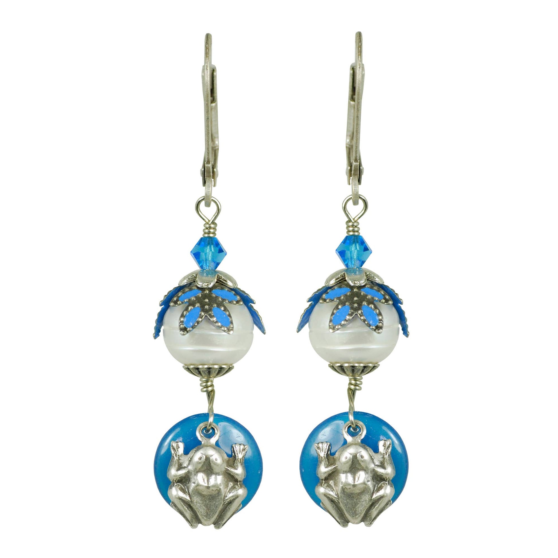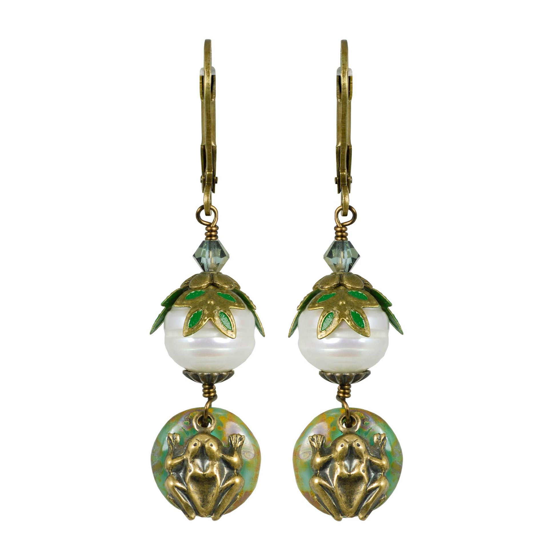 Frog & Lily Pad Pearl Glass Hand Painted Earrings - Fairyland