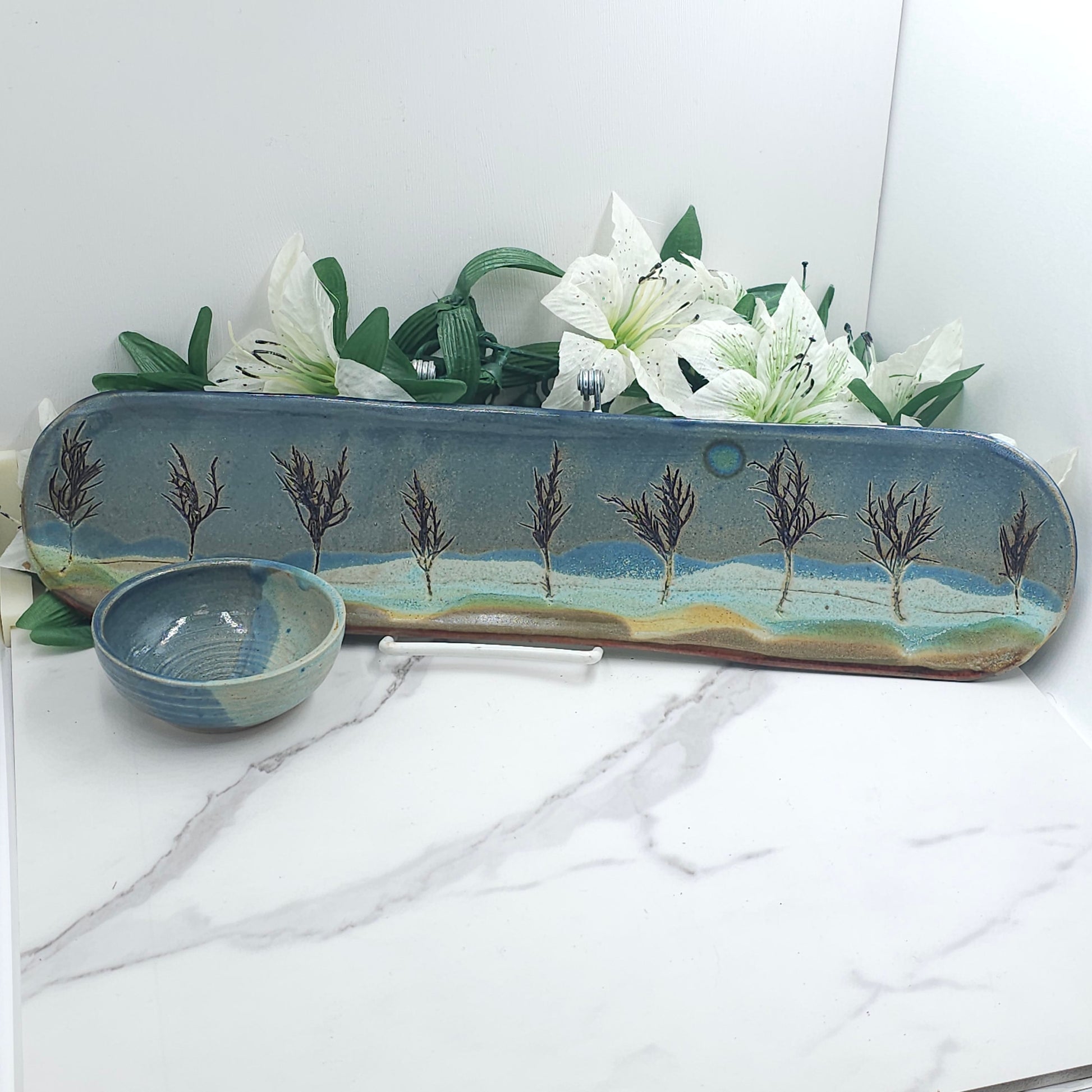 Long Tray W/DIP Bowl Branches handmade pottery