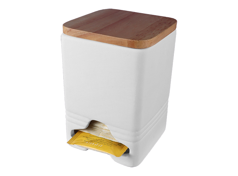 Add the Modern Teabag Dispenser to your kitchen countertop today! This sleek dispenser holds all of your favorite tea bags, making it a great accessory for any kitchen. Its modern design keeps your tea bags organized and easily accessible, adding both functionality and style to your countertop.
