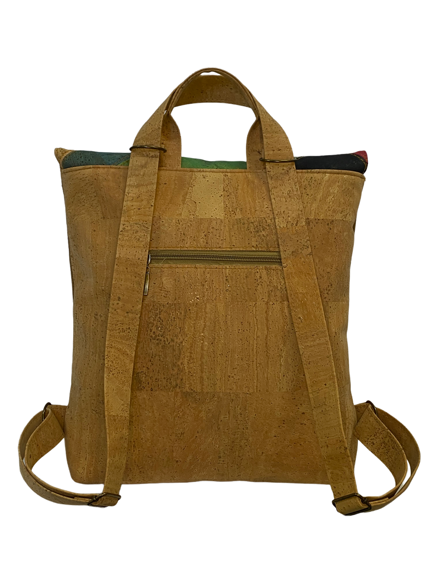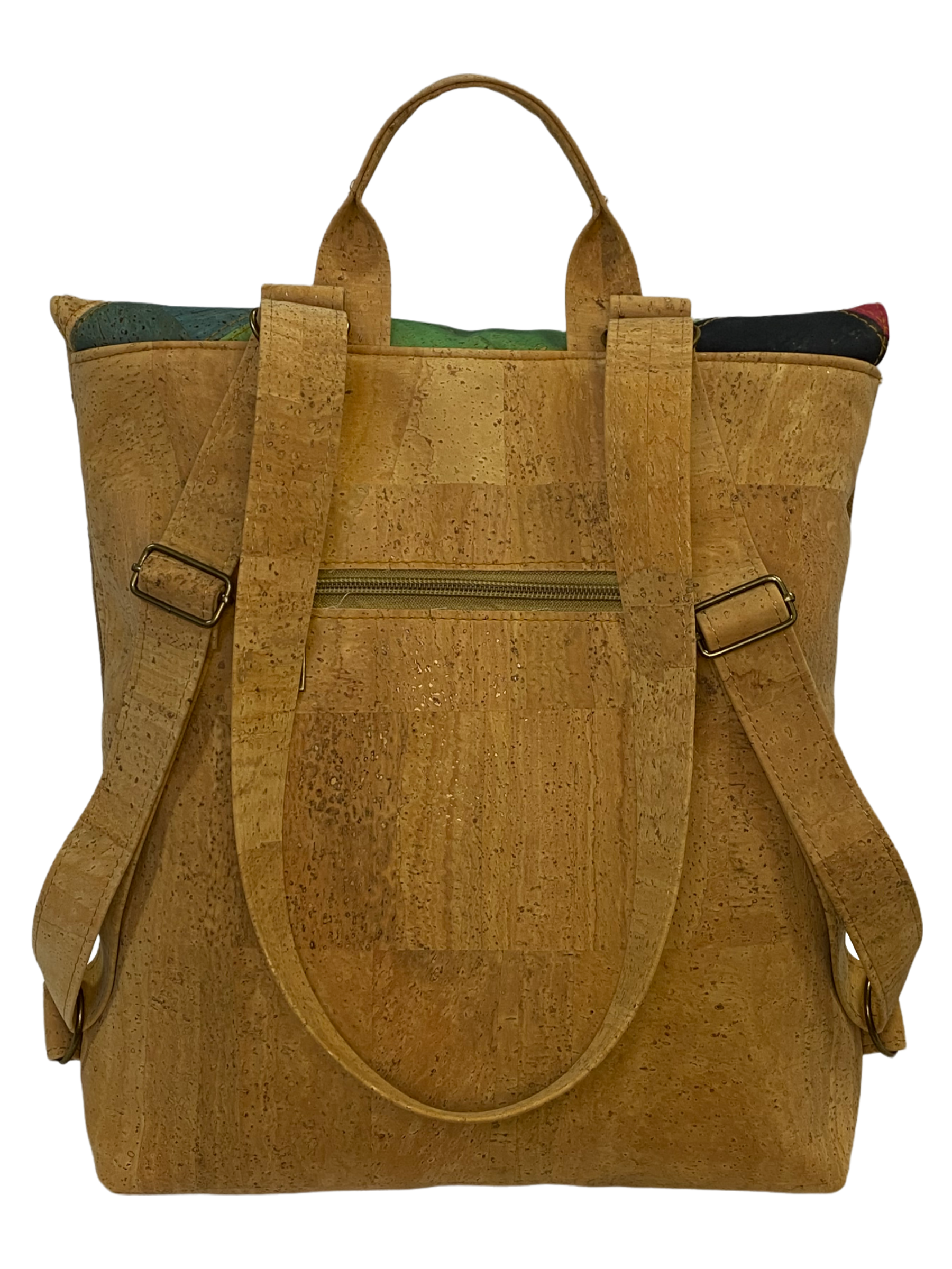 Adjustable strap in flat cork of 20 mm with double stitching. Backpack strap convertible into shoulder bag.