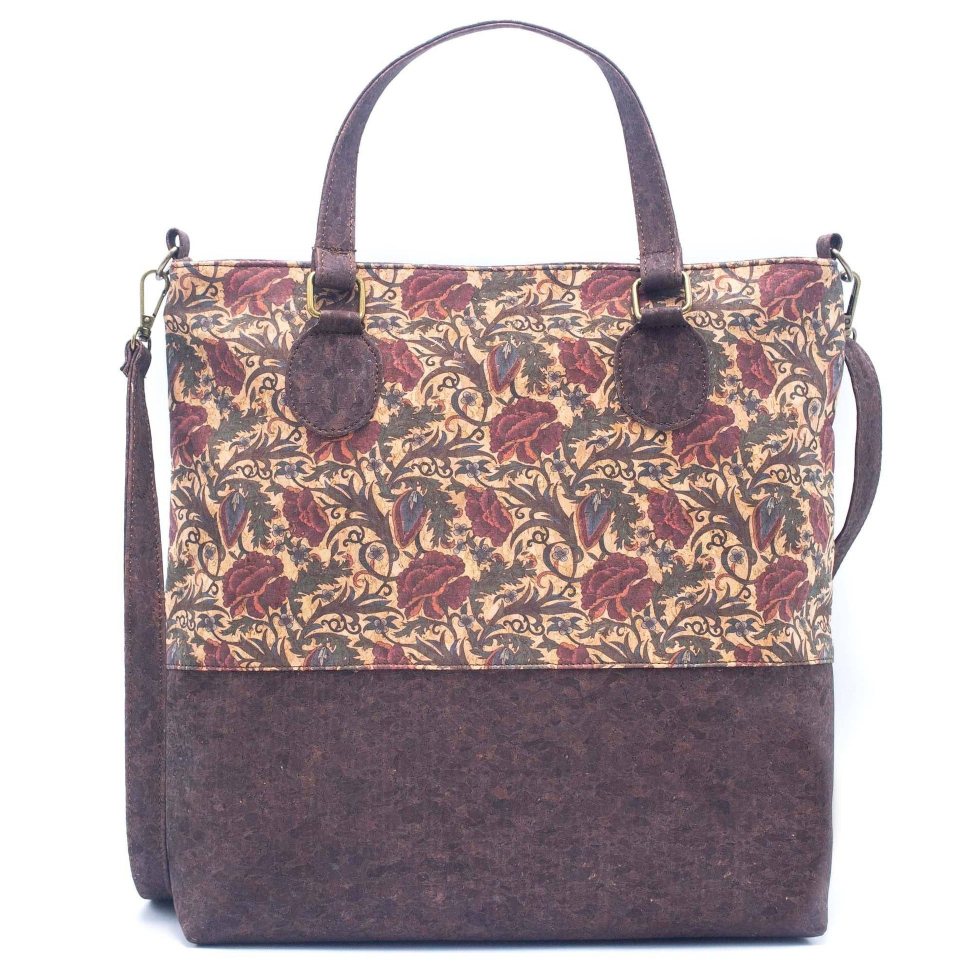 Up your game with this quirky cork daily tote. Combination of brown and a printed floral cork fabric, this piece is a sure winner. It features an adjustable cork strap, separate pockets for your phone and keys outside, spacious interior and inner side pocket to organize your tiny items. It´s made from high quality silver cork which is eco-friendly and waterproof.