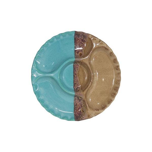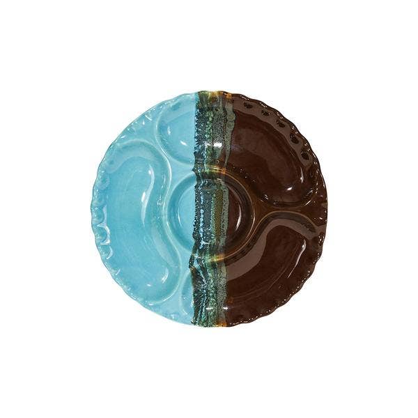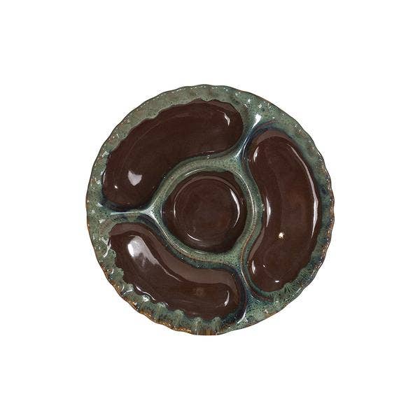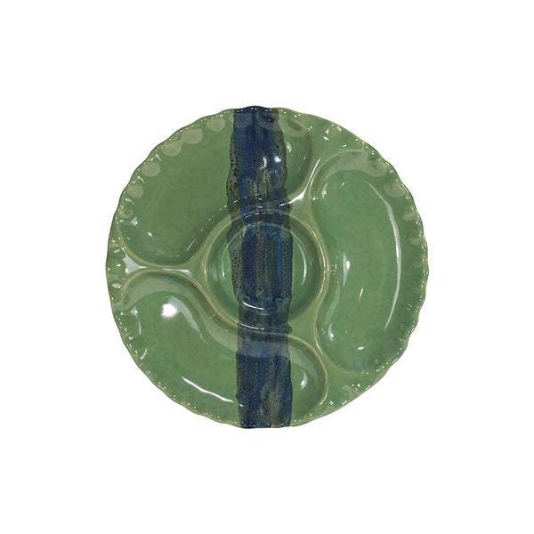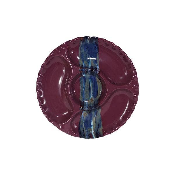 When holidays and parties roll around, every spread needs a good relish tray for all the little odds and ends that make an ordinary buffet, extraordinary. Fill each indentation with your choice of favored relishes, pickled vegetables, or crudités with dip. Each handcrafted ceramic tray makes a lovely statement on any buffet or sideboard, and is created to be a fully-functional piece. Choose from a range of colors and patterns to suit almost any kitchen or home décor.