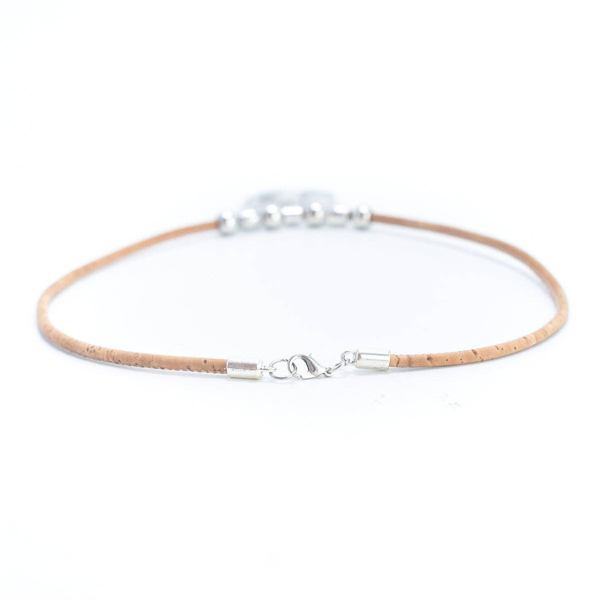 The necklace itself is made of cork cord, which is a type of cord or string crafted from cork material. Cork is a sustainable and eco-friendly material derived from the bark of cork oak trees. It is lightweight, flexible, and has a unique texture, making it an interesting choice for jewelry making.