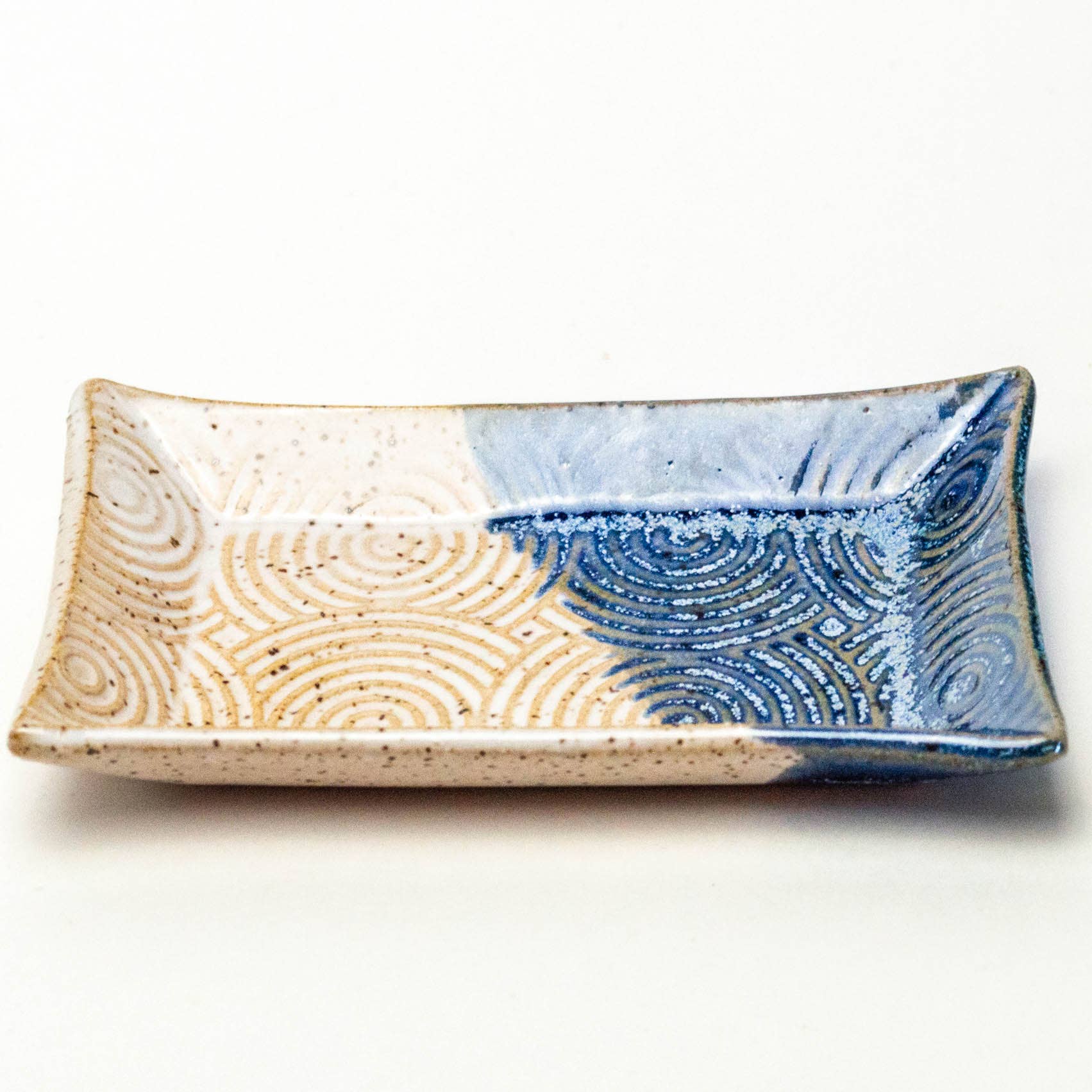 This beautiful spiral pattern trinket dish is hand-built and hand-glazed in Oberlin, OH, USA. Food, dishwasher, and microwave safe. It measures approximately 4 1/4 inches long by 3 inches wide. All our ceramic items are handmade and will vary from one to the next. No 2 pieces will be exactly the same. Colors may vary slightly.