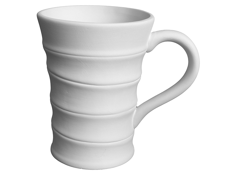 The raised design makes this mug the ultimate vessel to play with specialty glazes. Try a fun, playful look and ombre rainbow colors flowing in the spiral pattern from top to bottom.