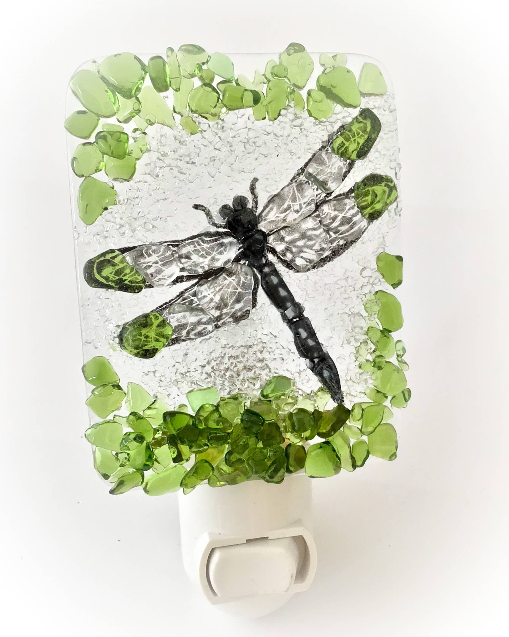 This eco-friendly night light is hand made using 100% recycled glass. Each light is carefully layered piece by piece with upcycled crushed bottle glass and kiln-fused.