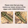 Our Three-Line Zipper Natural Cork Crossbody Bag for Women, adorned with beautiful floral and tile pattern prints. This bag is a testament to exquisite craftsmanship, featuring decorative rivets along the edges that add an elegant touch.