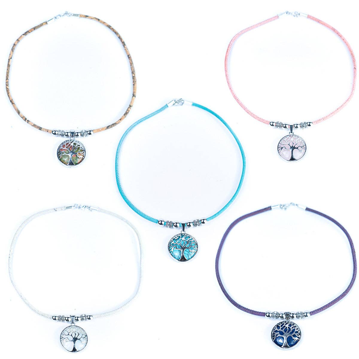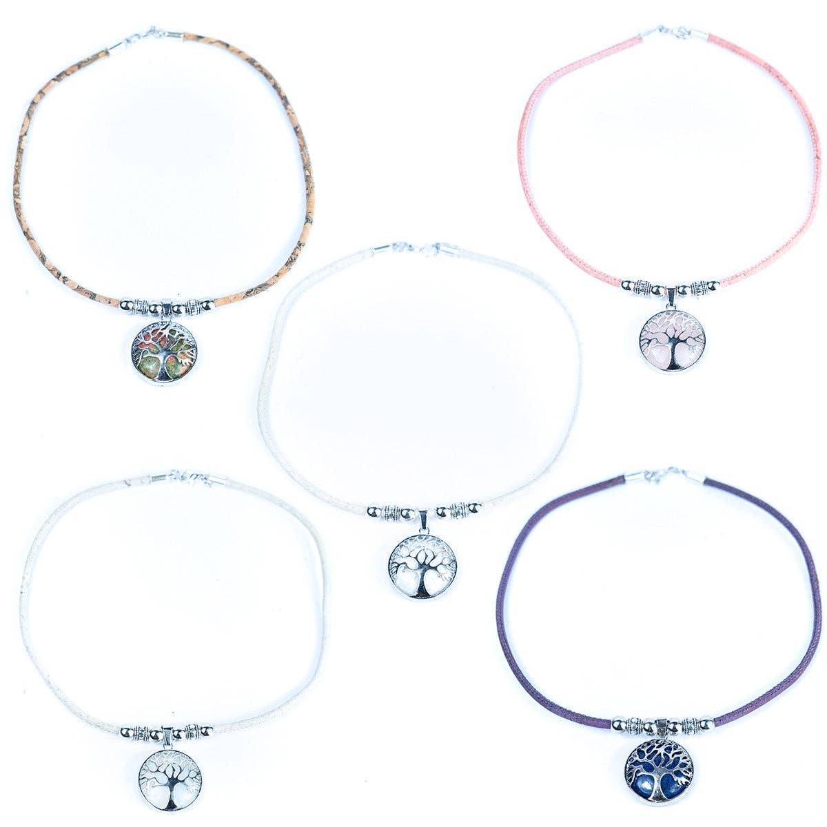 This handmade necklace is uniquely designed, based on natural or colored cork wire, with a beautiful tree-shaped pendant, symbolizing life and growth. The design of the necklace is simple and elegant, suitable for all occasions.