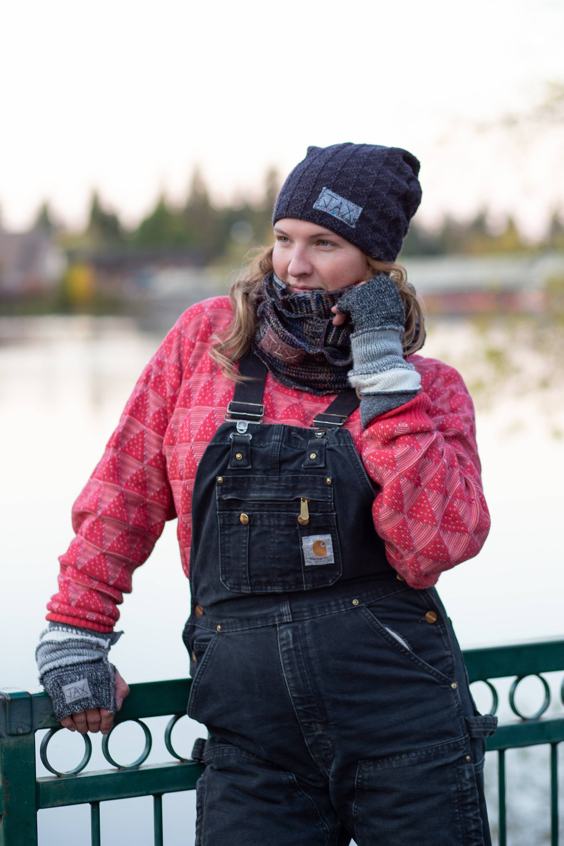 Each scarf is made using a pattern, although keep in mind each hat may vary just slightly due to the handmade and upcycled nature of the product.