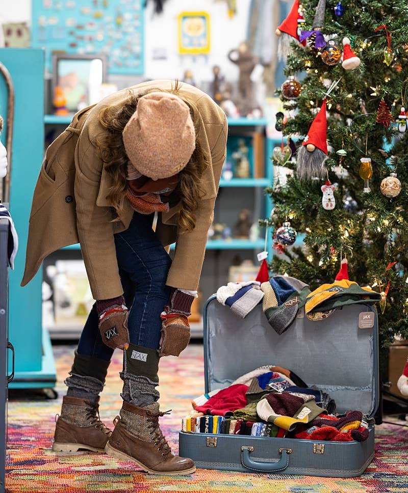 These handmade upcycled JAX leg warmers keep your ankles and legs toasty while out in the cold months shopping, hiking, biking, yoga, lounging and more!
