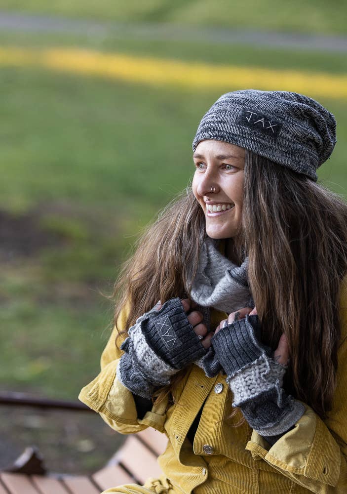 These handmade upcycled JAX texting gloves keep your hands cozy but fingers free! Using recycled sweaters these small batch fingerless gloves are unique and highly desired by our fans. Anymore you want your fingers free to access your phone instead of constantly taking your glove off. That is why we named them Texting Gloves. The seams are on the outside creating a deconstructed look. The label is on the right hand so you know which one is which! One size usually fits all.