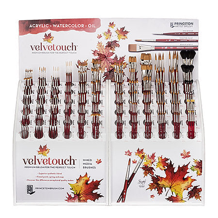 Velvetouch is comprised of a multiple-filament, luxury synthetic blend for excellent color-holding capacity, precision tapering and resilient spring. The blend of synthetic is unique to each individual shape to ensure maximum performance. Comfort is ensured with our smooth, signature Velvetouch handle.