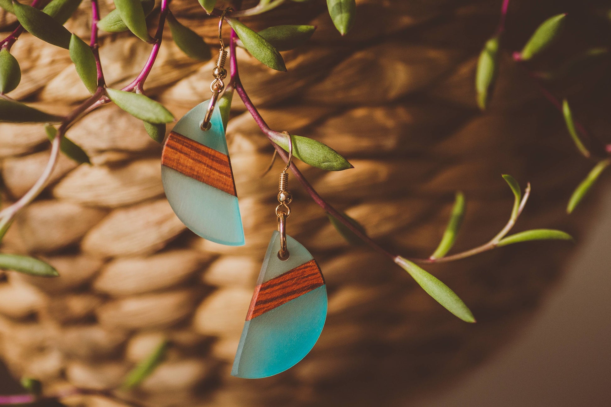 We are pleased to present you with our handcrafted wood and resin earrings.